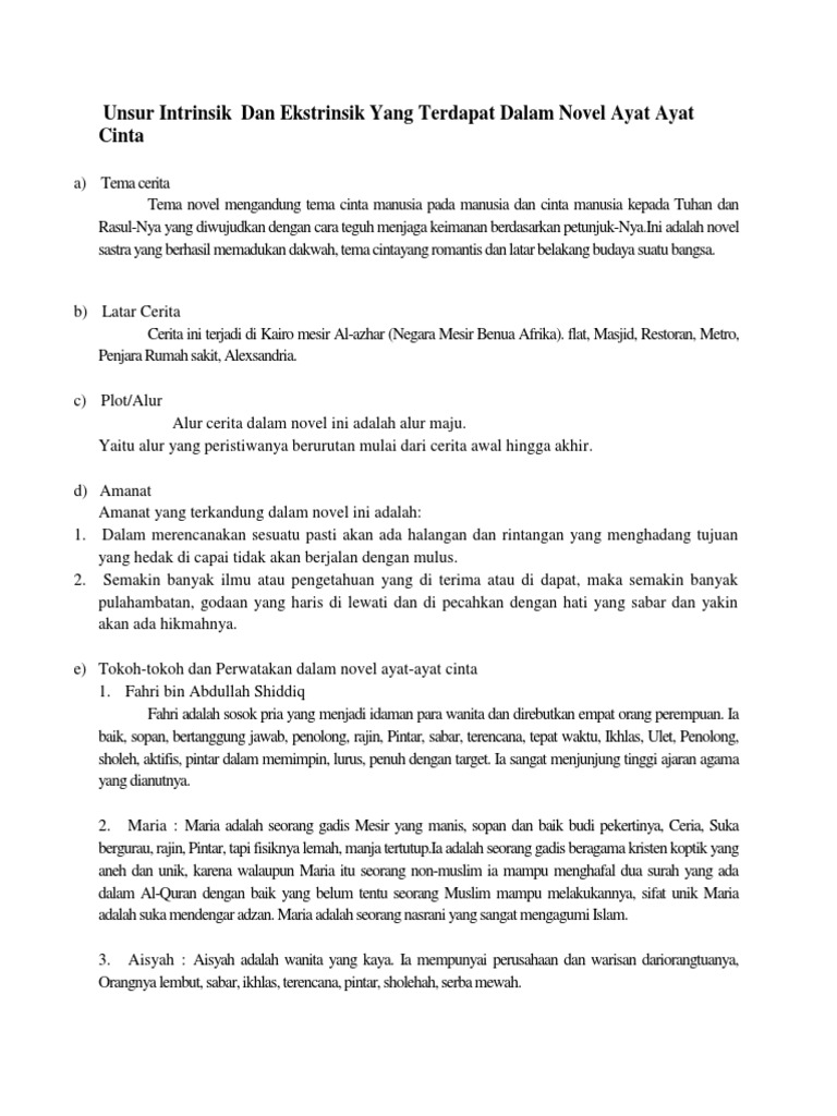 Unsur Intrinsik Dan Ekstrinsik Yang Terdapat Dalam Novel Ayat Ayat Cinta Pdf